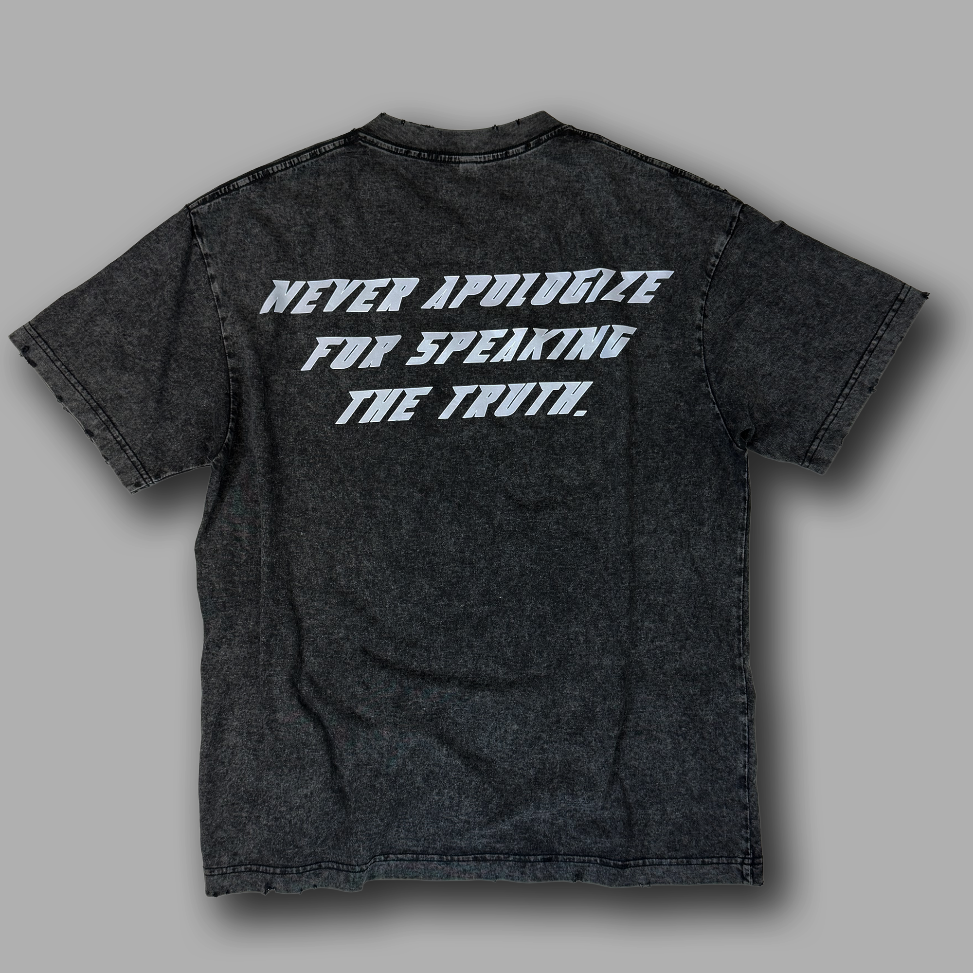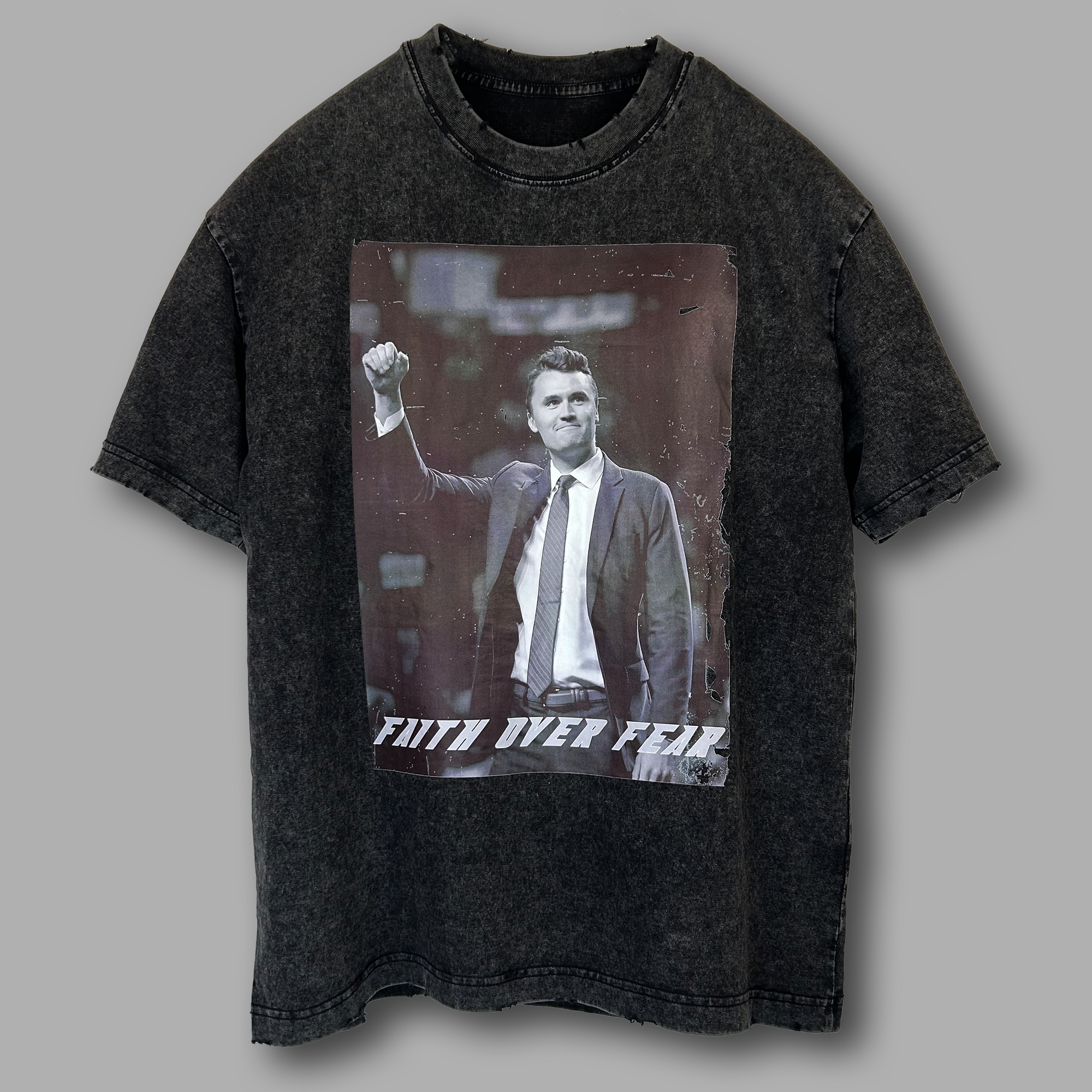 Celebrate the enduring legacy of Charlie Kirk with this premium oversized T-shirt, a distinguished tribute to an influential American leader. This shirt features a distressed finish that enhances its bold aesthetic. The back proudly bears the resolute phrase “Never Apologize for Speaking the Truth,” echoing Charlie’s unwavering principles, while the front showcases a striking “Faith Over Fear” design, honoring his impactful work and faith.
