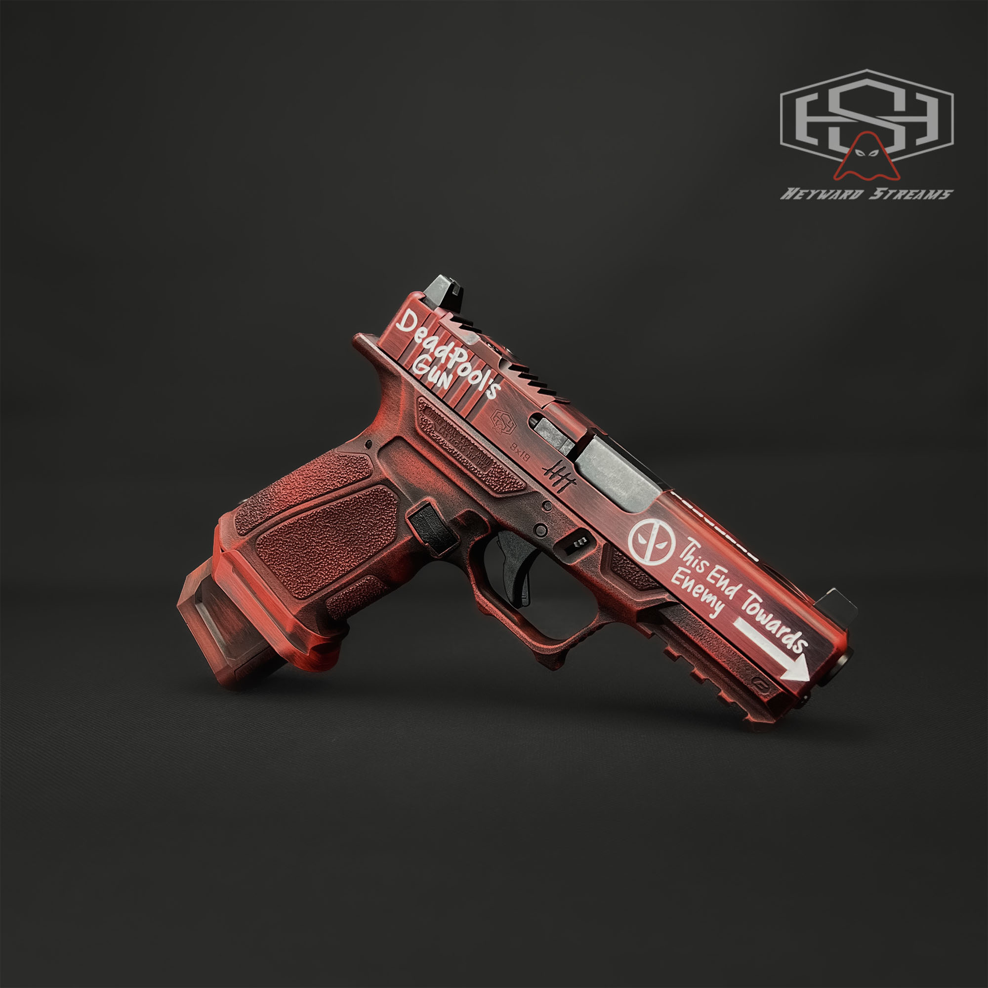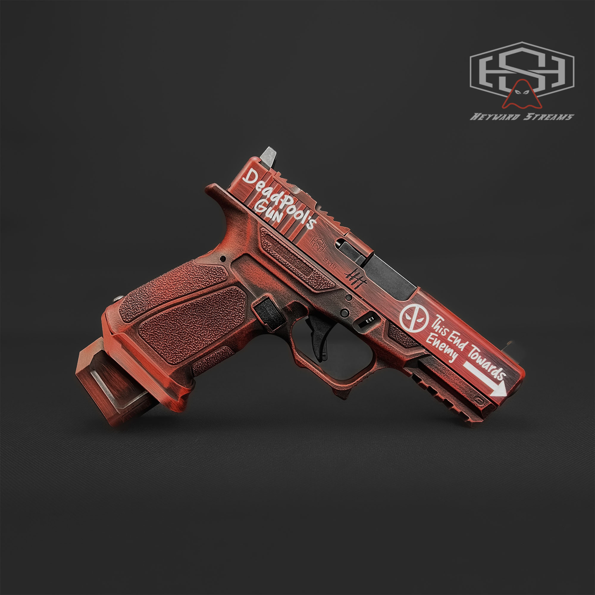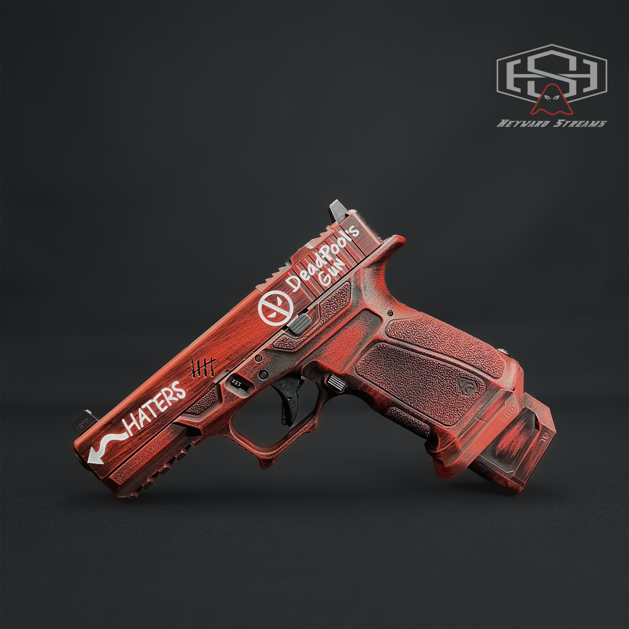 - Model: Glock 19 Platform (Strike Arms) – Deadpool Edition Custom Build
