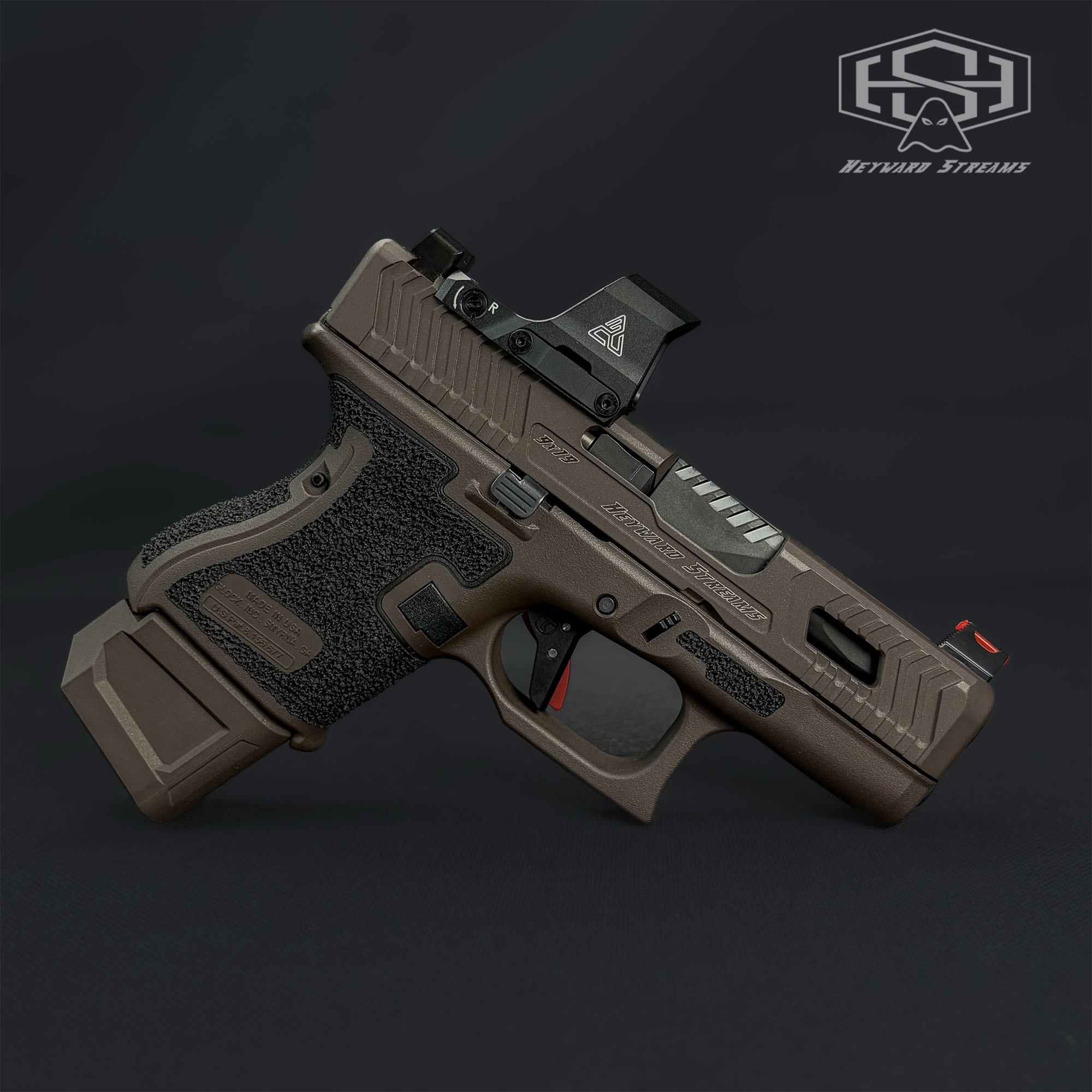 This Custom Glock 26 Gen 5 by Heyward Streams combines Glock’s proven compact-duty platform with precision in-house upgrades for superior performance, control, and modern optics compatibility. Built on a genuine Gen 5 Glock 26, this pistol features a professionally milled OEM slide, premium Cerakote finish, enhanced ergonomics, and a competition-grade trigger system.