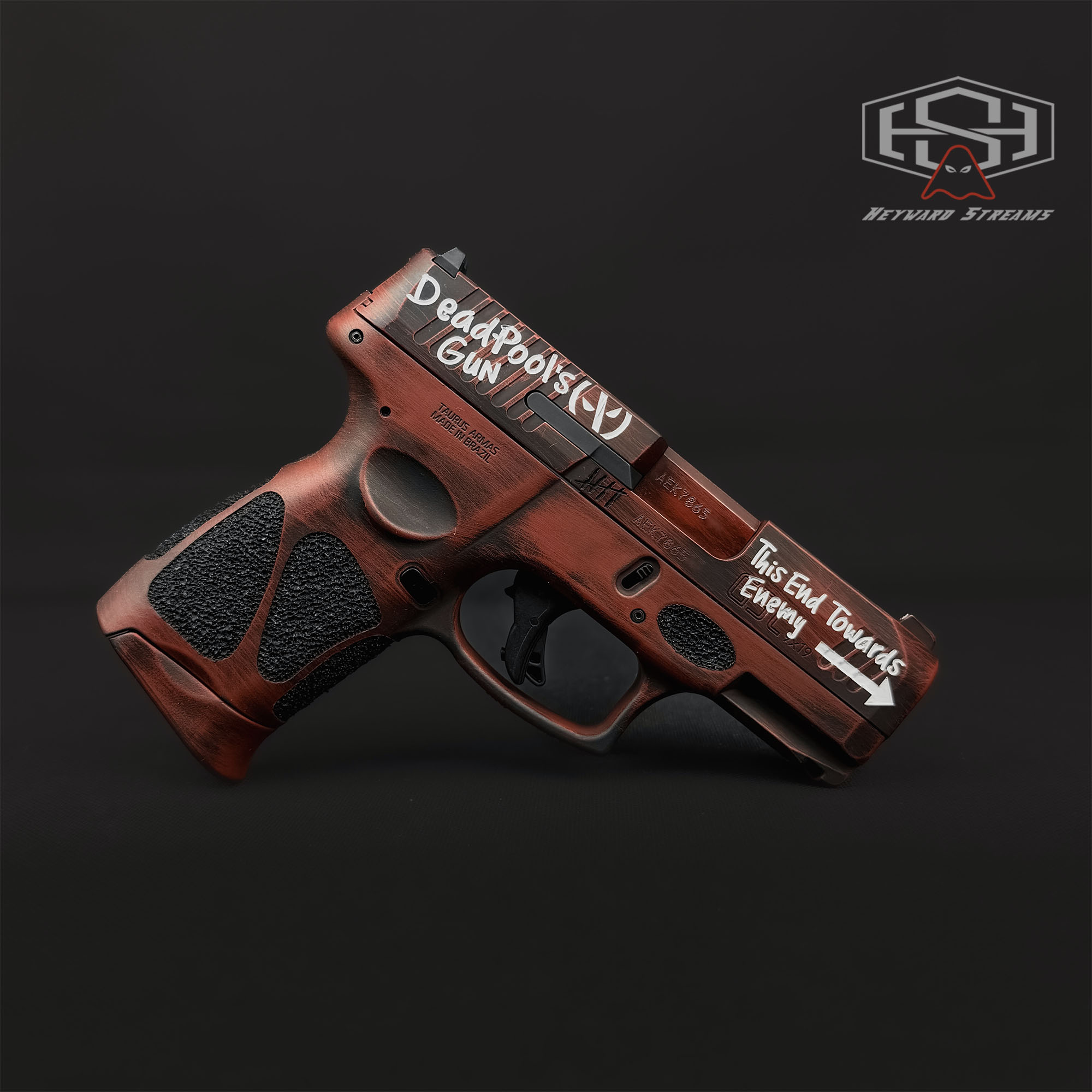 Unleash some Maximum Effort with this fully customized Deadpool Taurus G3C, built for shooters who like their carry gun bold, confident, and impossible to ignore. The pistol features a striking Red Battle Worn Cerakote finish with a custom Deadpool theme, giving it the perfect mix of attitude and battlefield character while still offering exceptional durability against wear, sweat, and daily carry.