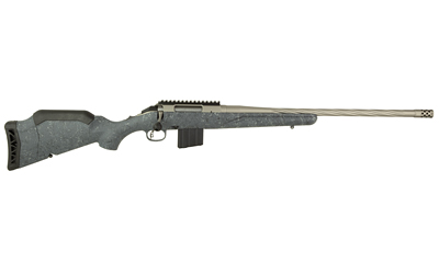 Ruger is proud to introduce the Ruger American Rifle Generation II, an update to the American-made rifle that has been the benchmark for accuracy, durability, and performance in bolt-action rifles for over a decade. Upgraded features include a durable, attractive Cerakote finish on the barreled action, a threaded bolt handle, stainless steel bolt body, and intuitive three-position tang safety that locks the bolt, which prevents inadvertent bolt opening yet allows the rifle to be loaded with the safety engaged. The rigid stock features a removable comb riser to improve sight alignment when using optics, as well as a length of pull (LOP) spacer, which can be removed or replaced to accommodate a variety of statures. Designed with customer feedback in mind, the Ruger American Rifle Generation II is sure to become the first choice for hunters and firearms enthusiasts. The standard generation II models feature a durable, Gun Metal Gray Cerakote barreled action and a dark gray stock that is textured with black and gray splatter for excellent grip and control in the field. The 20″, medium-contour, cold hammer-forged barrel features deep spiral fluting on most models, improving the balance of the rifle without sacrificing rigidity or accuracy. The threaded muzzle features a factory installed radial muzzle brake.