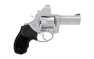 The Taurus 856 is a reliable 6-shot, 38 Special revolver that features soft rubber grips-making it comfortable to shoot at the range while the double/single action increases speed and accuracy for follow-up shots. The 856 is offered in either a Matte Black or Matte Stainless finish. Known for its easily managed recoil impulse, the .38 Special round of the 856 can accommodate ammunition ranging from light target loads to self-defense rounds. The 2-inch barrel on the 856 now comes with a removable serrated front sight optimizing on-body or off-body carry, and home defense usage.