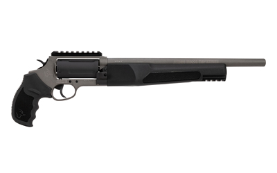 More than 10 years since it made its first appearance in Brazilian courtrooms, the Judge still presides. The Taurus Judge Home Defender DA/SA Revolver Bore gives you more size and more versatility. Like its predecessors, the Judge Home Defender chambers both .45 Colt rounds and 3″ .410 Bore shotshells, giving you versatility and power in equal measure. But the extended 13″ barrel provides enhanced ballistic performance and better accuracy. The top Picatinny rail accepts a wide range of optics, and the front underside rail provides a stable platform for high-output lights and more. Double-action/single-action trigger. Fiber-optic front sight/fixed channel rear.